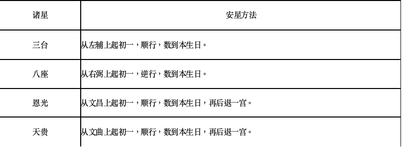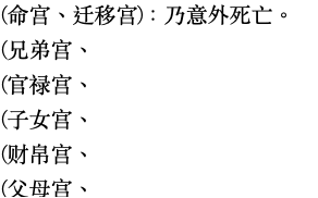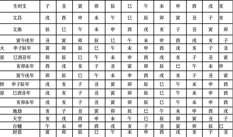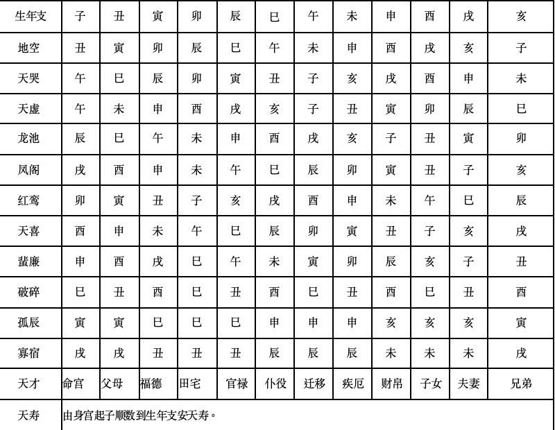 文昌陷吊客 | 长生 | 伏兵 | 右弼 官府 | 冠带 | 亡神 博士 临官 | |