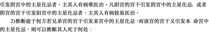 断:命宫为财帛宫之官禄宫,因此命宫为管理钱财的能力,命宫的宫干引发化忌 的年、月、日决定了其人的钱财在什么时候有损失。1974甲寅年、1984甲子年、1994 甲戌年、2004甲申年、2014甲午年、……诸年钱财有损失。