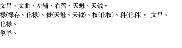 八座 | 晦气 | 凤阁 蜚廉 | 丧门 | 地劫平 | 贯索 | 恩光 官符 |